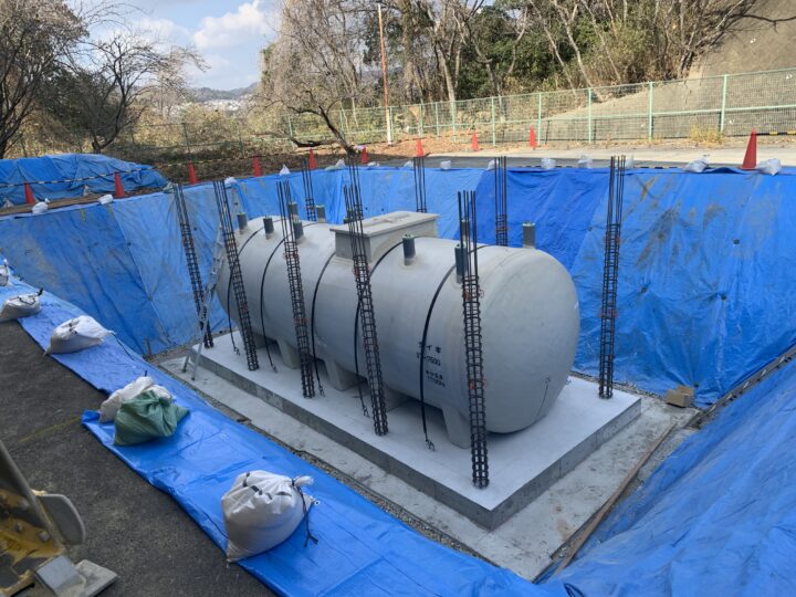 平常時は地下タンク内にトイレなどの災害備蓄品を収納